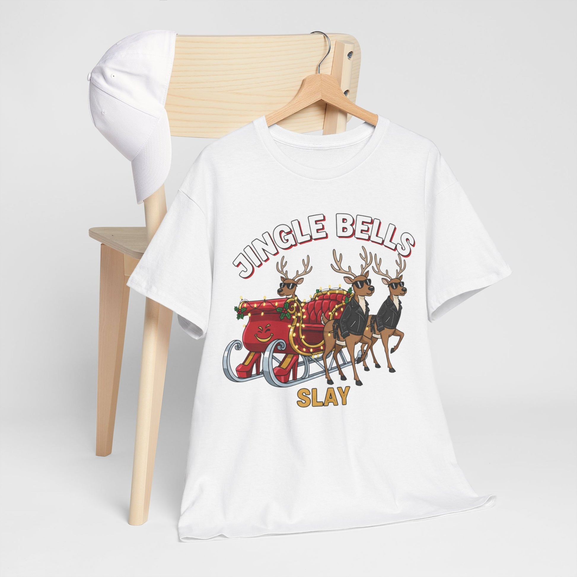 Feel the warm crackle of winter nights with this Christmas themed tee. A bold, playful “Christmas Slay Jingles Bells” graphic brings cheeky holiday spirit without being over-the-top. Soft, sturdy cotton hugs your shoulders while the ribbed collar keeps its shape through late night carol runs and cocoa fueled decorating sessions. Wear it layered under a flannel for tree cutting mornings or solo while wrapping gifts and listening to holiday playlists. It’s made to move with you from last-minute party prep to cosy movie marathons and the subtle natural flecks in the undyed option add a lived in, rustic charm that suits slow, intentional celebrations.