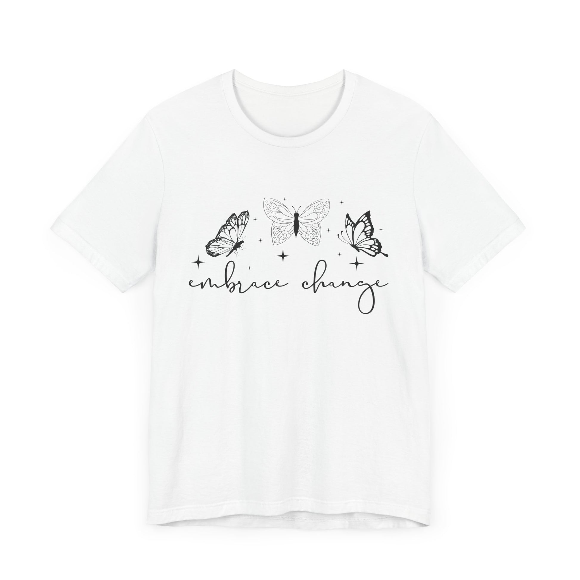 Embrace Change Butterfly Tee - Unisex Jersey Tee for Transformation, Inspirational Gift, Spring Fashion, Everyday Wear, Eco-friendly