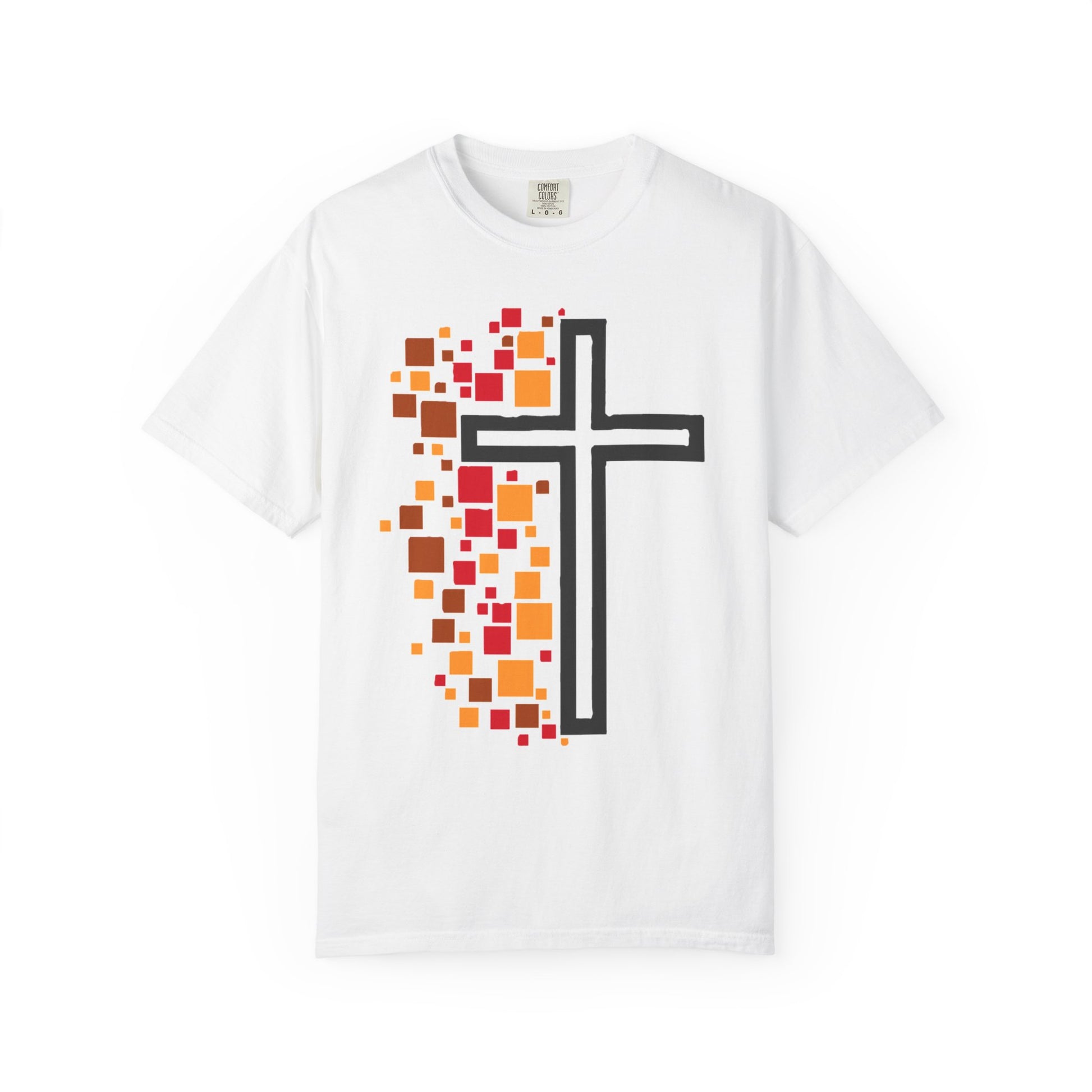 Faith-Inspired T-Shirt with a Cross Design, perfect for Christian gifts, church outings, casual wear, and religious apparel. This unisex garment-dyed t-shirt offers a comfortable fit and a classic style that is suitable for various occasions and settings. Church Outing, Casual Wear, Religious Apparel, Inspirational Top