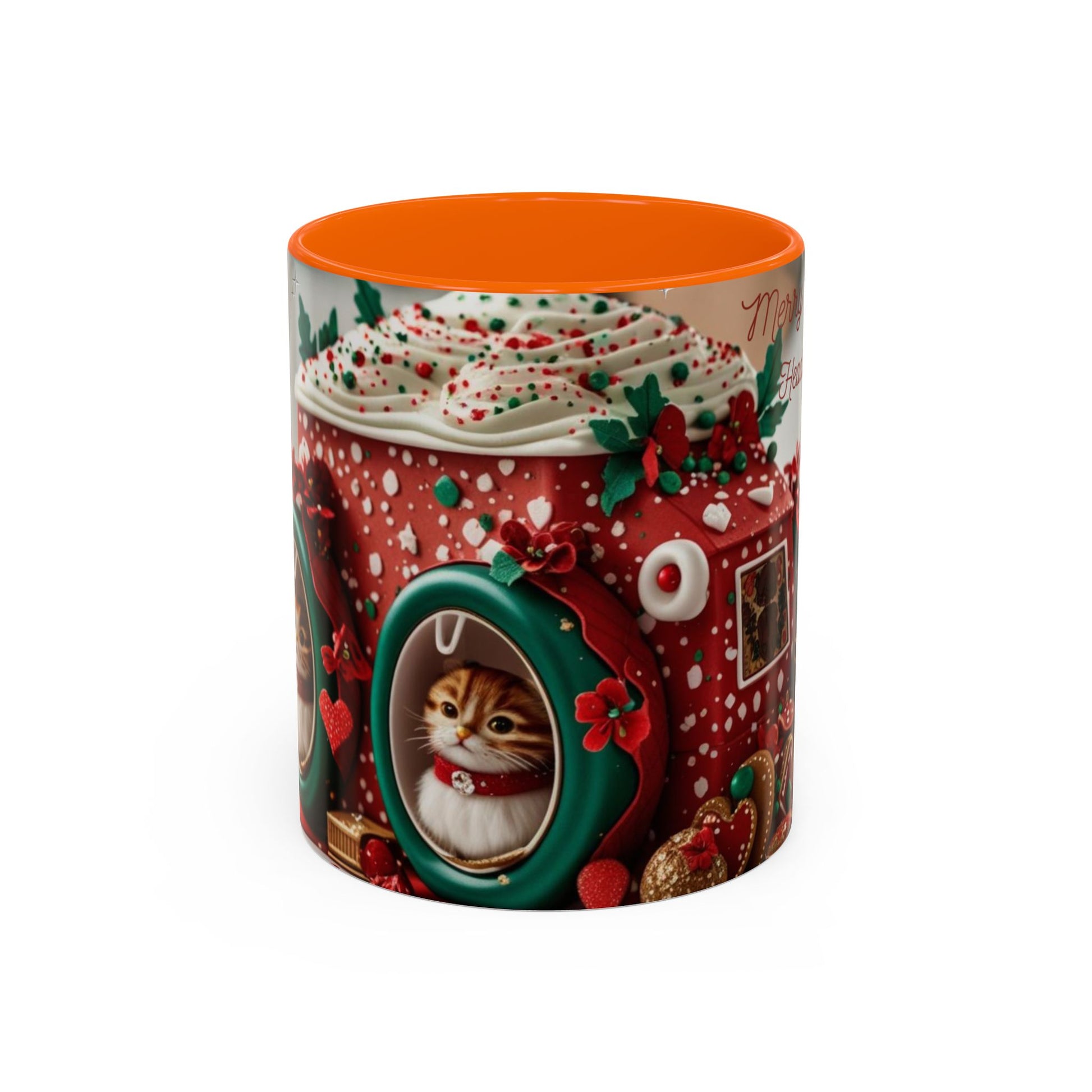 Festive Cat Coffee Mug, Holiday Gift, Christmas Coffee Cup.