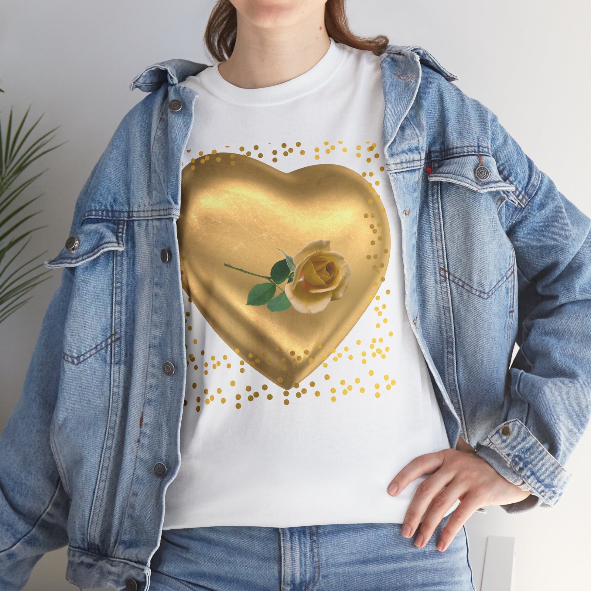 Golden Heart Tee, Unisex T-Shirt, Romantic Gift.