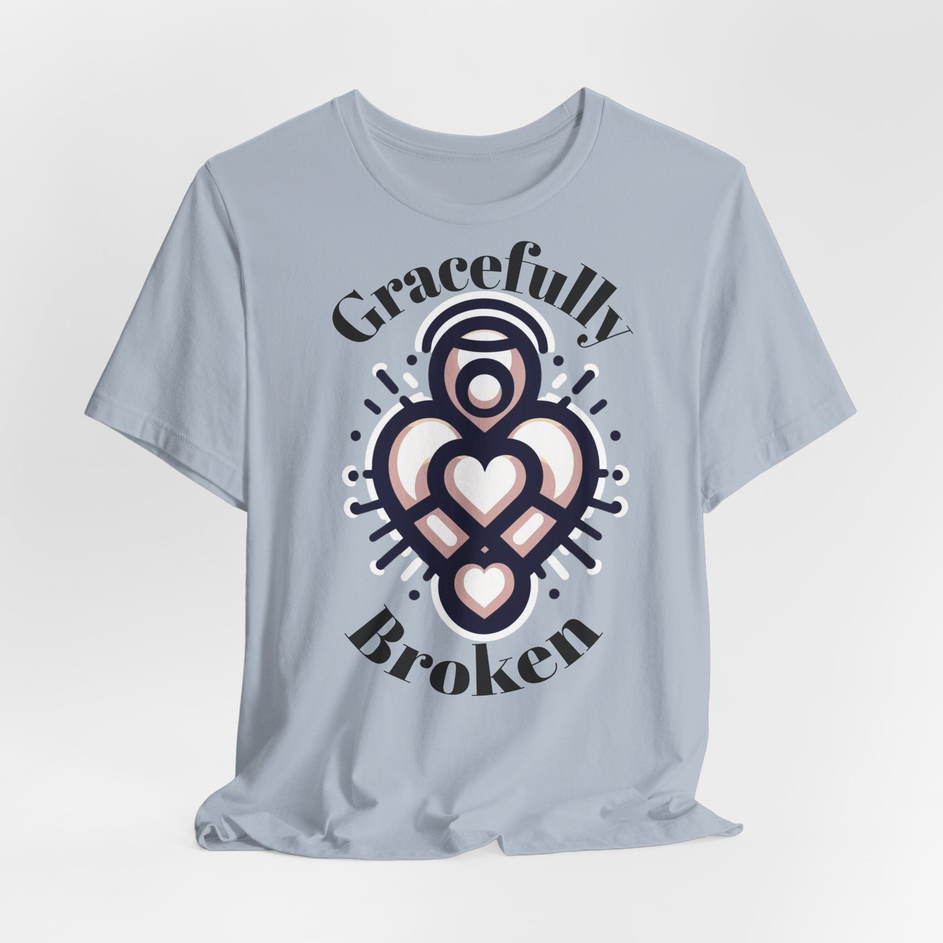 Gracefully Broken T-Shirt that exudes a sense of strength and resilience. Perfect for those who appreciate meaningful designs and want to express their faith. Ideal for casual wear or as a statement piece for special occasions and holidays.ger.