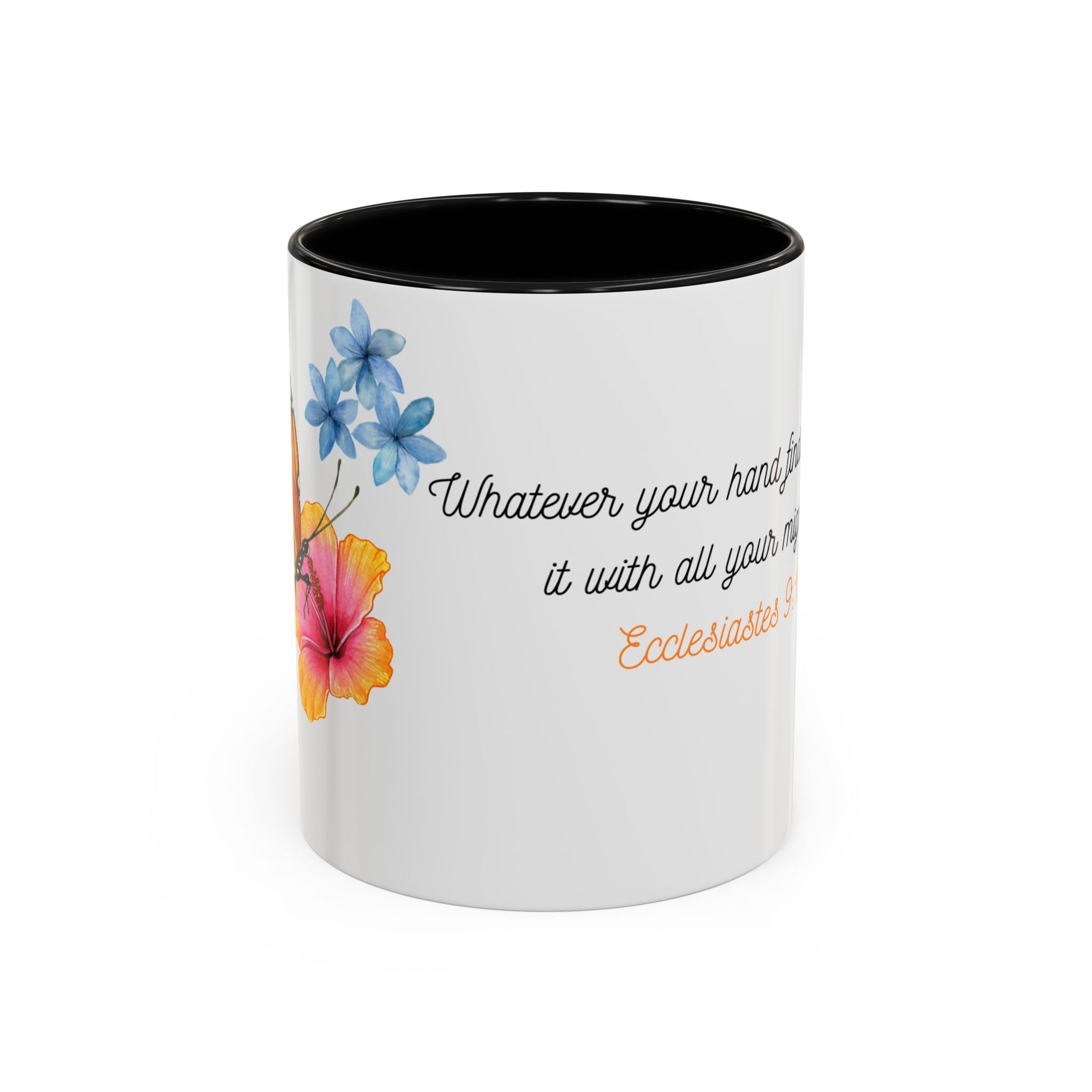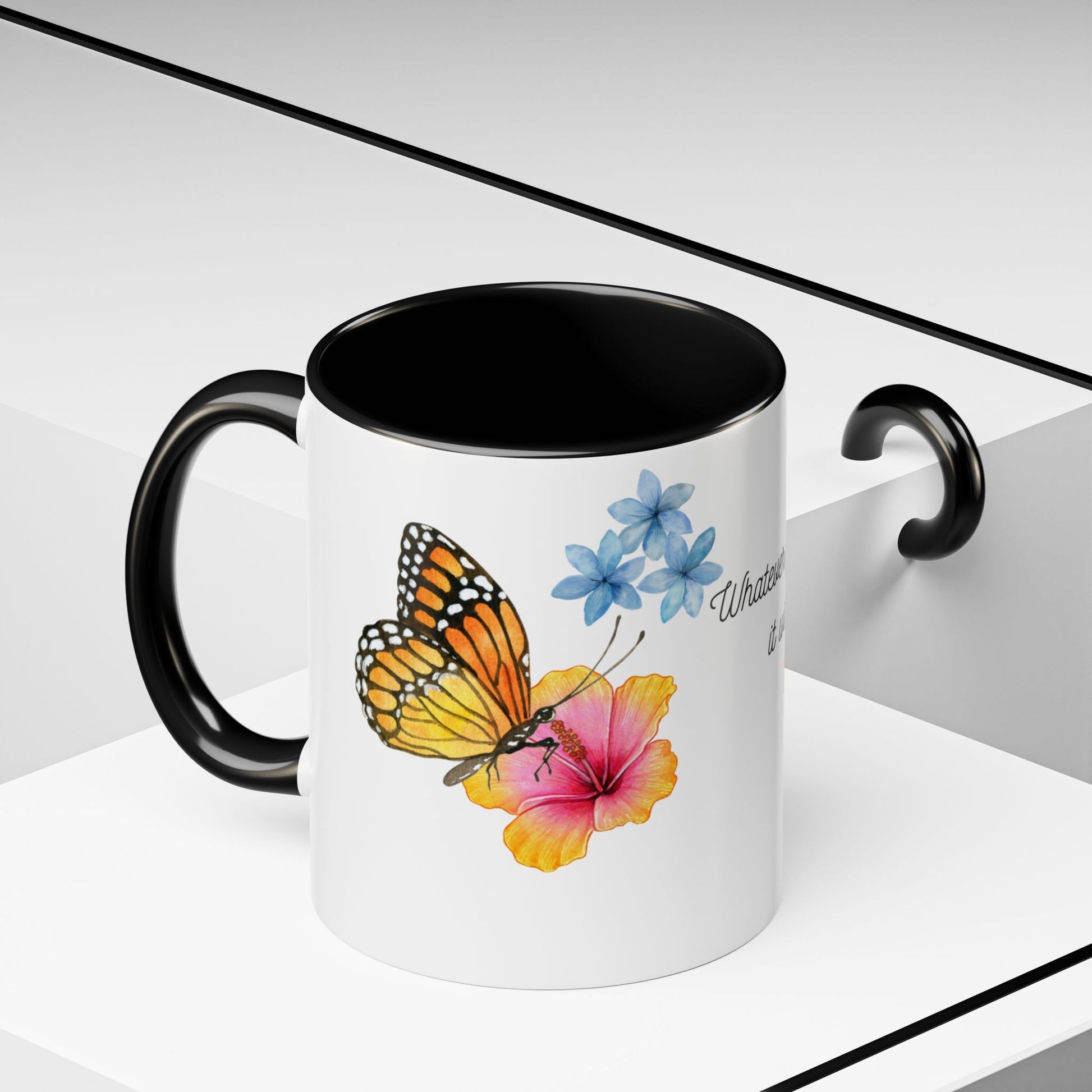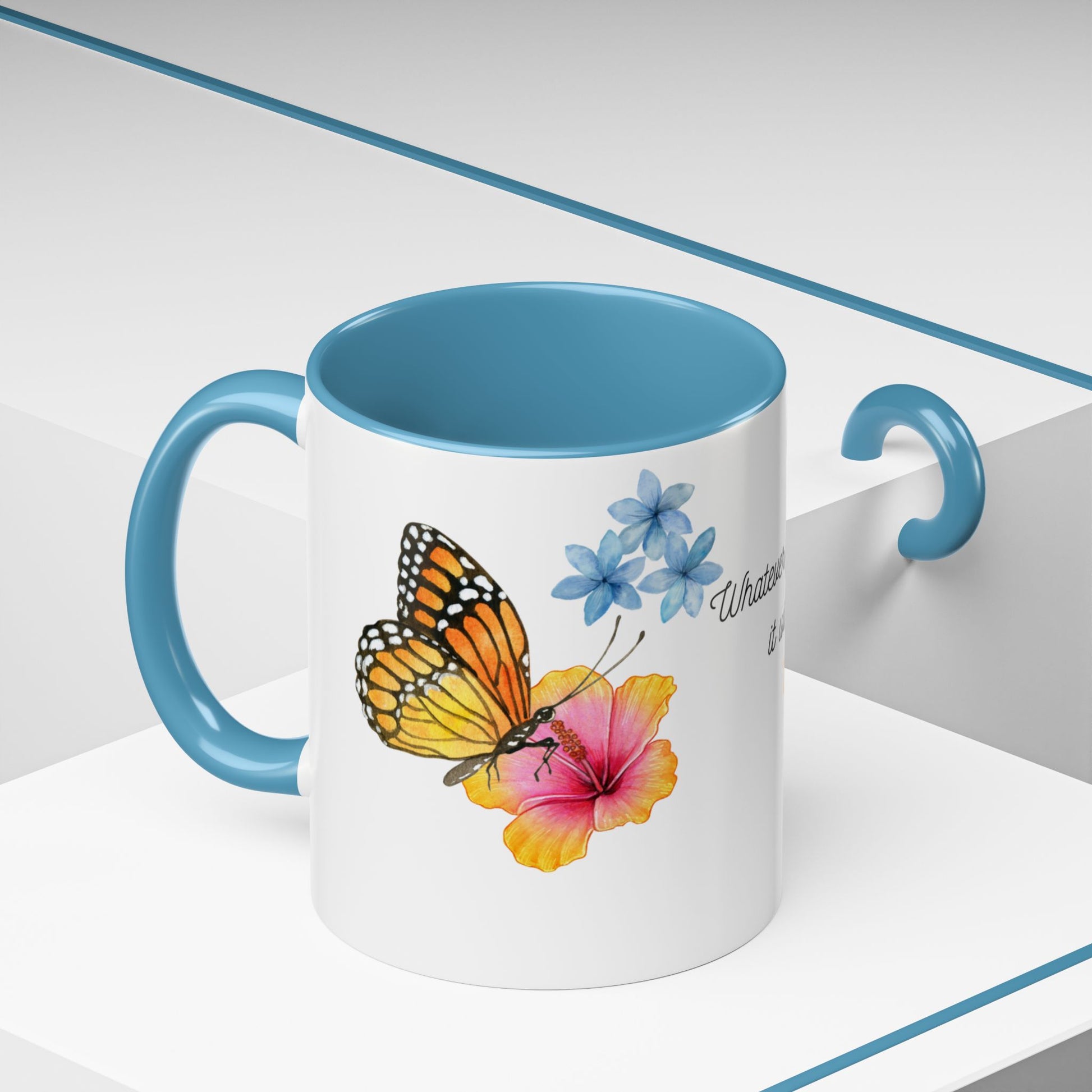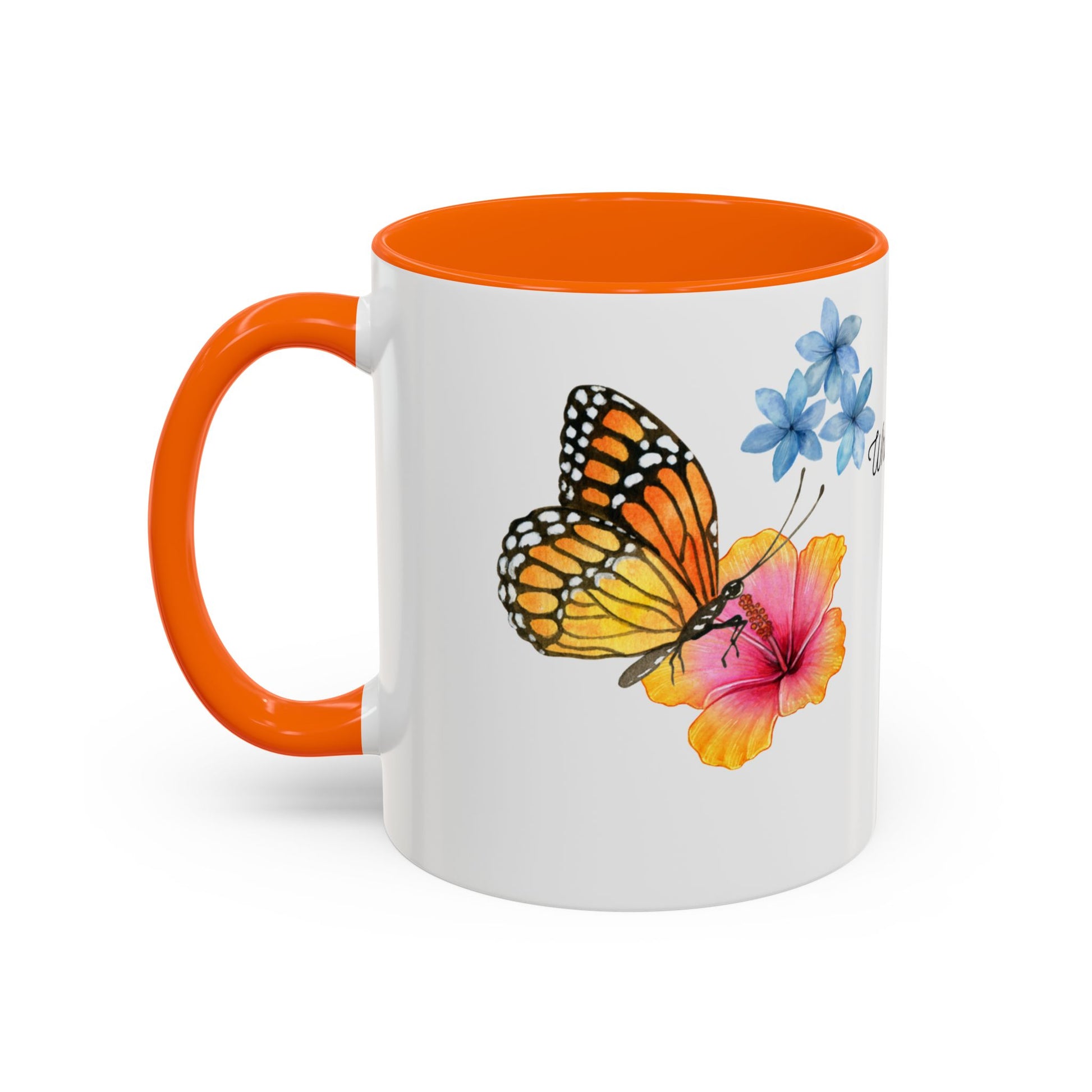 Inspirational Accent Mug - Butterfly Design, with Motivational words.