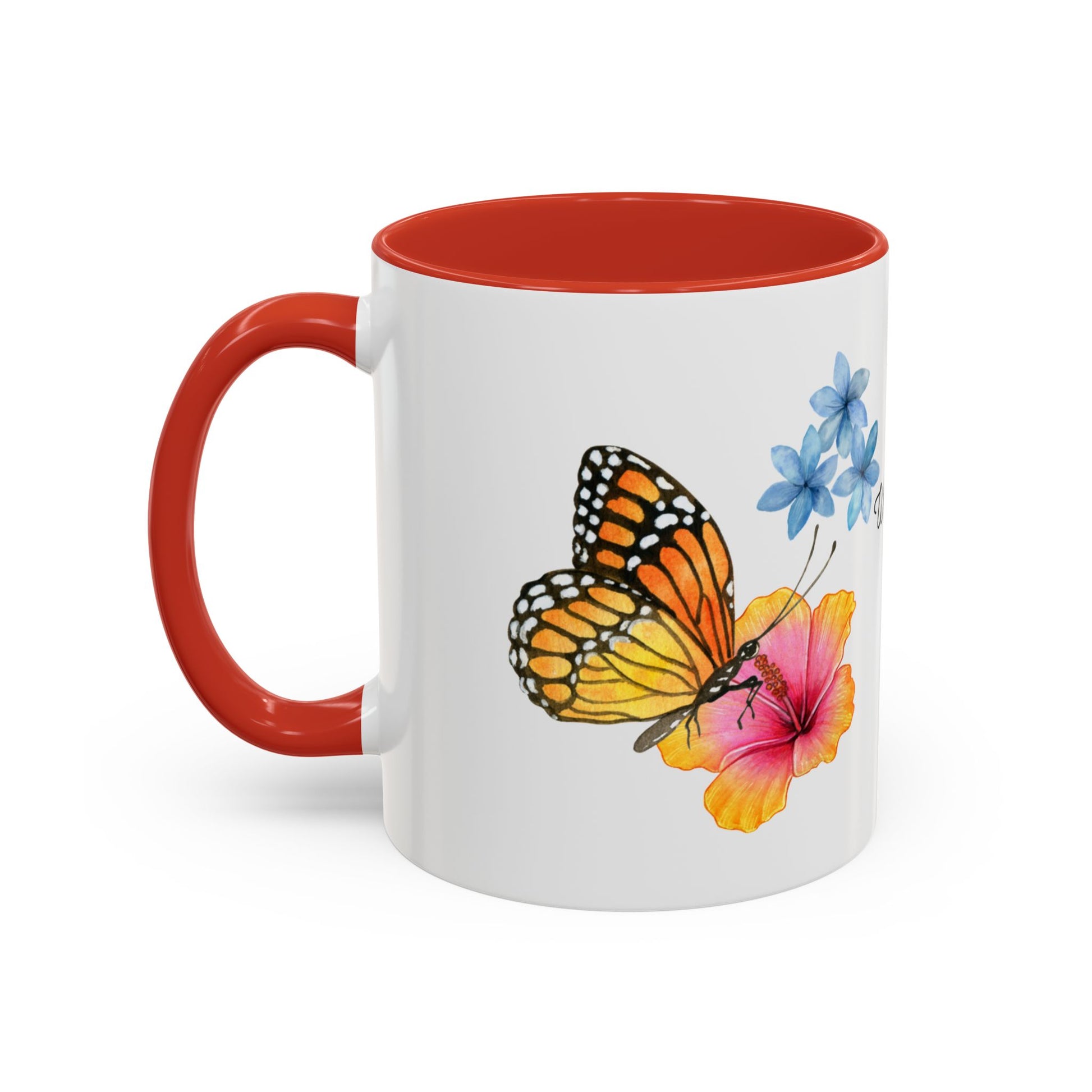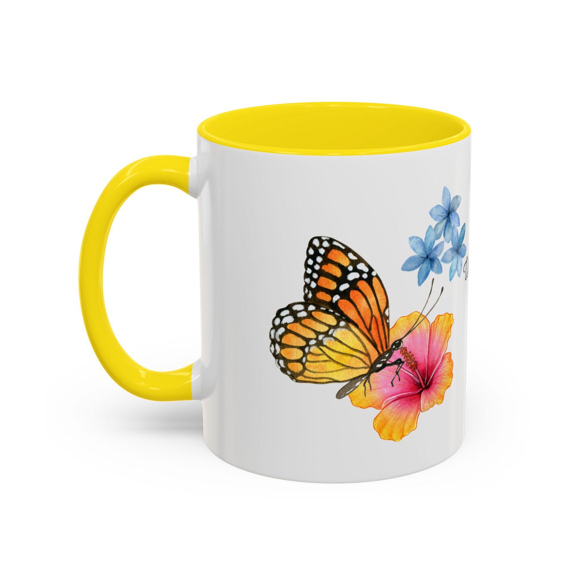 Inspirational Accent Coffee Mug with Butterfly Design, perfect for coffee lovers looking for a motivational boost. This unique mug makes a great home decor piece and a thoughtful birthday present