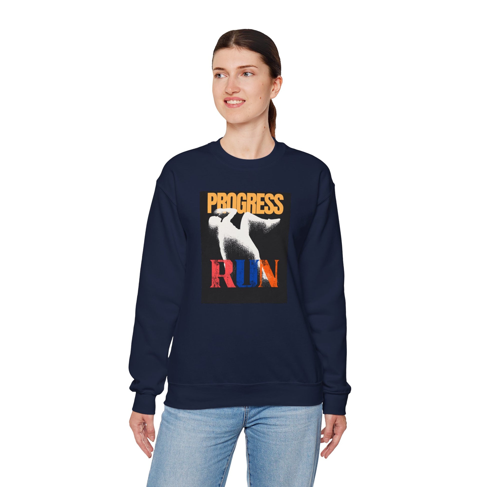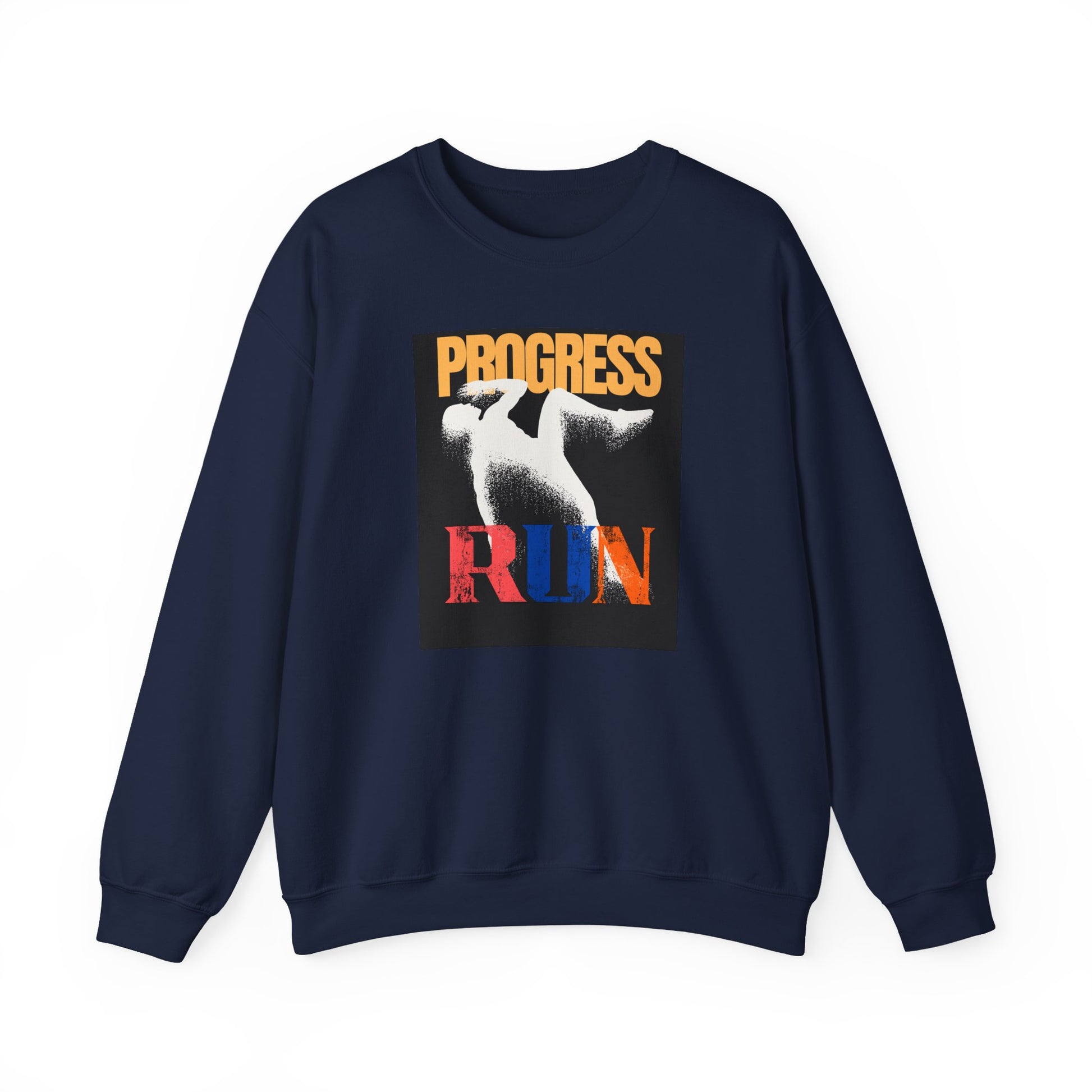 Stylish Progress RUN Crewneck Sweatshirt - Perfect Gift for Athletes, Casual Wear, Unisex Fashion, Running Enthusiasts, Sports Apparel