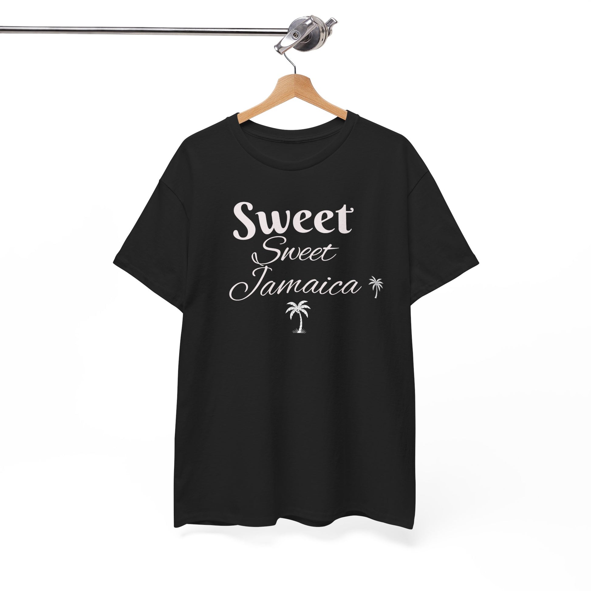 Soft and sturdy, this classic tee carries a laid-back island vibe with a clean, vintage-inspired script that reads “Sweet Sweet Jamaica” and tiny palm accents. The medium-weight cotton drapes comfortably while holding its shape wash after wash. Wear it on slow mornings with worn-in denim, on breezy beach walks, or layered under an open shirt for bonfire nights. The muted print keeps the look subtle and wearable—an easy way to carry a slice of Jamaican warmth into everyday rhythms.