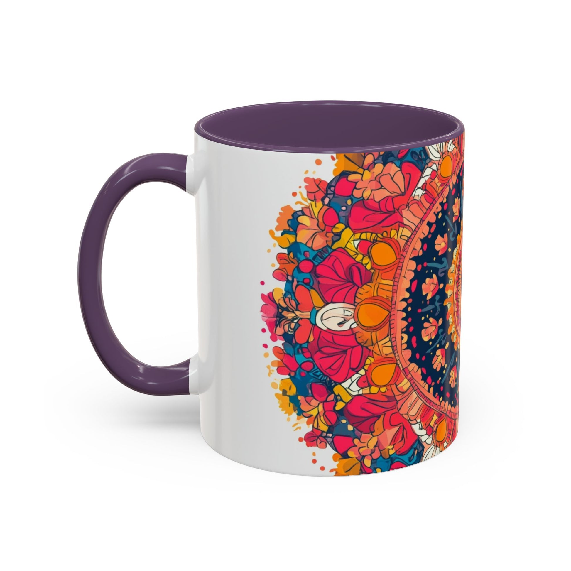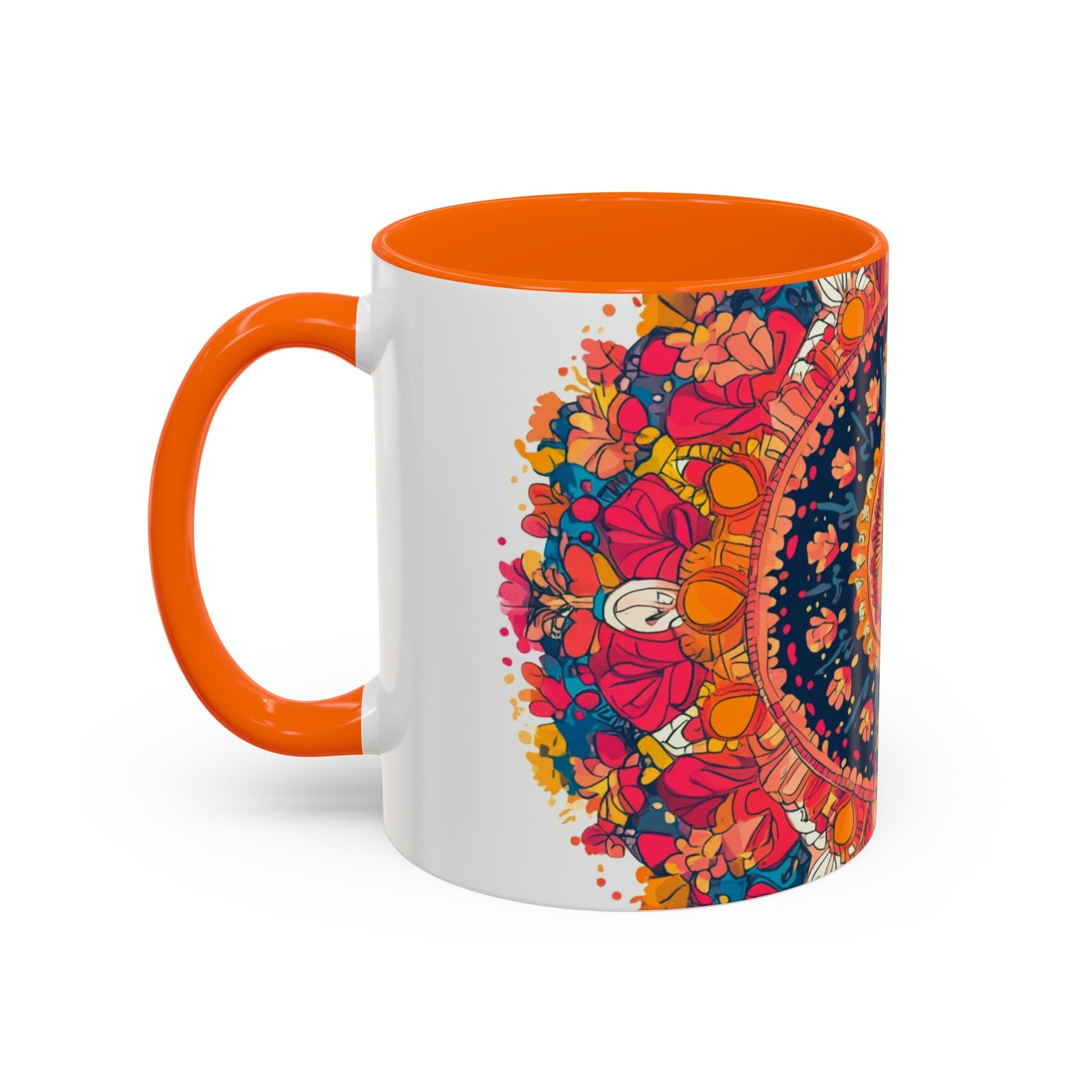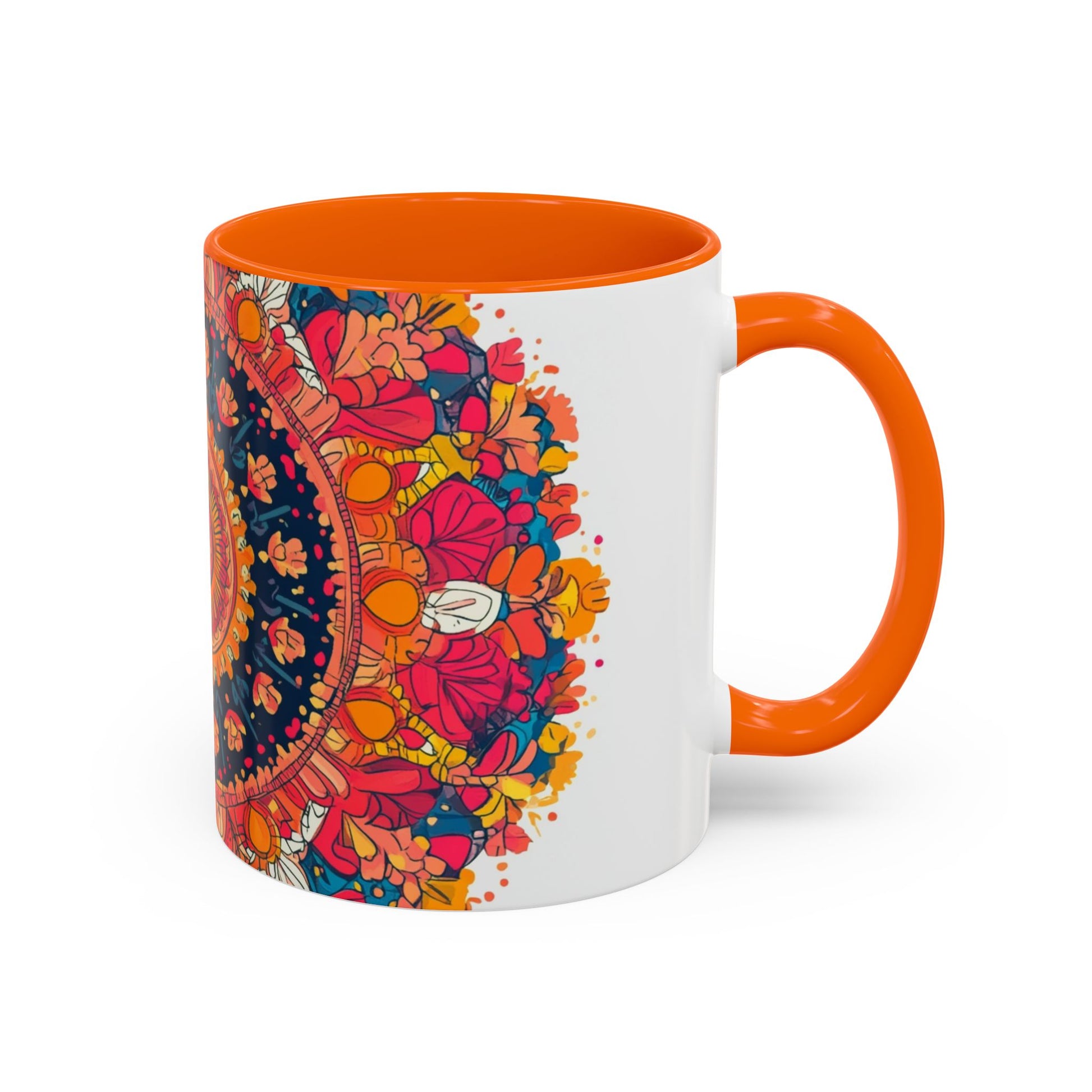 Vibrant Mandala Coffee Mug, Colorful Floral Drinkware.